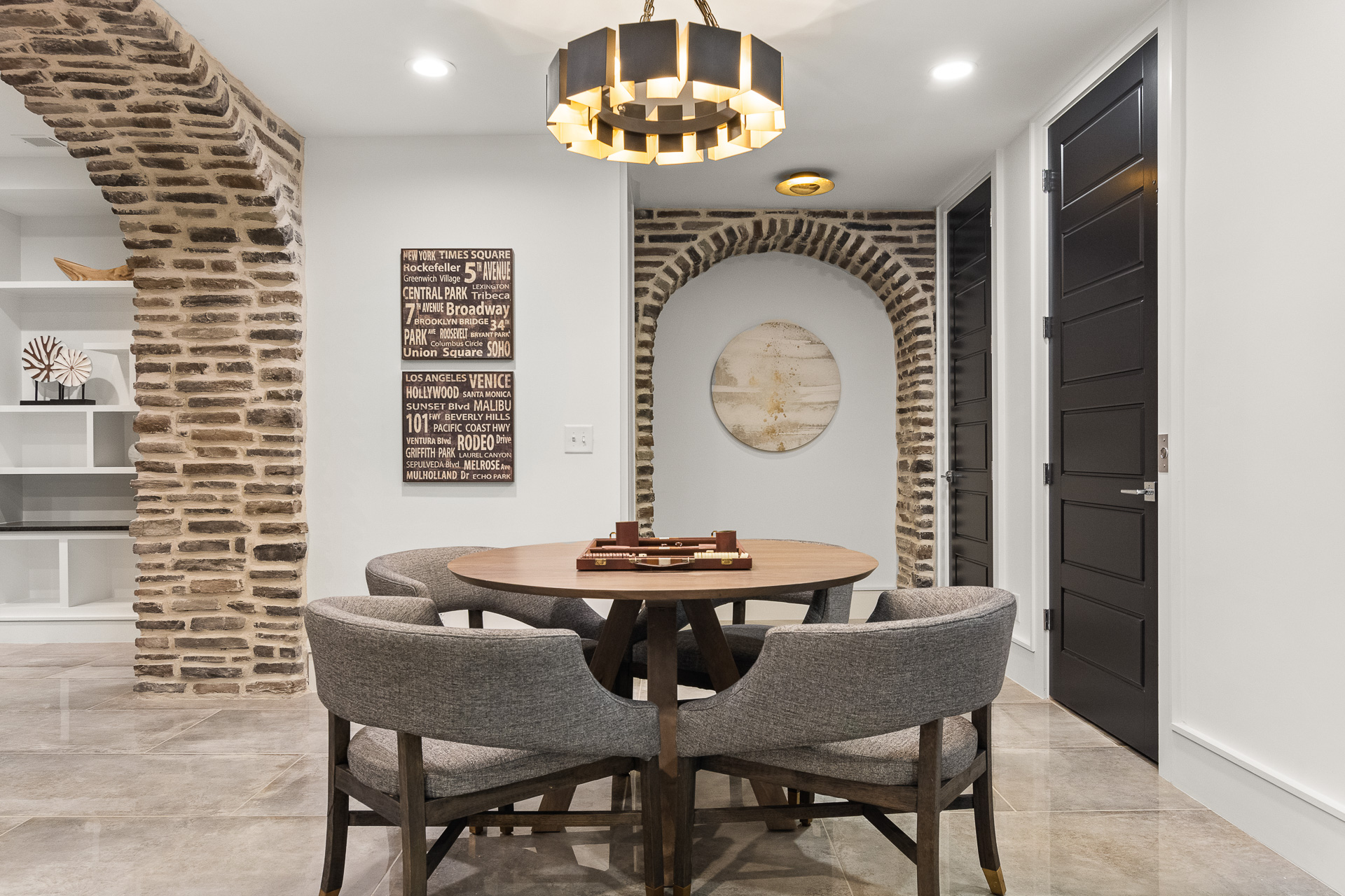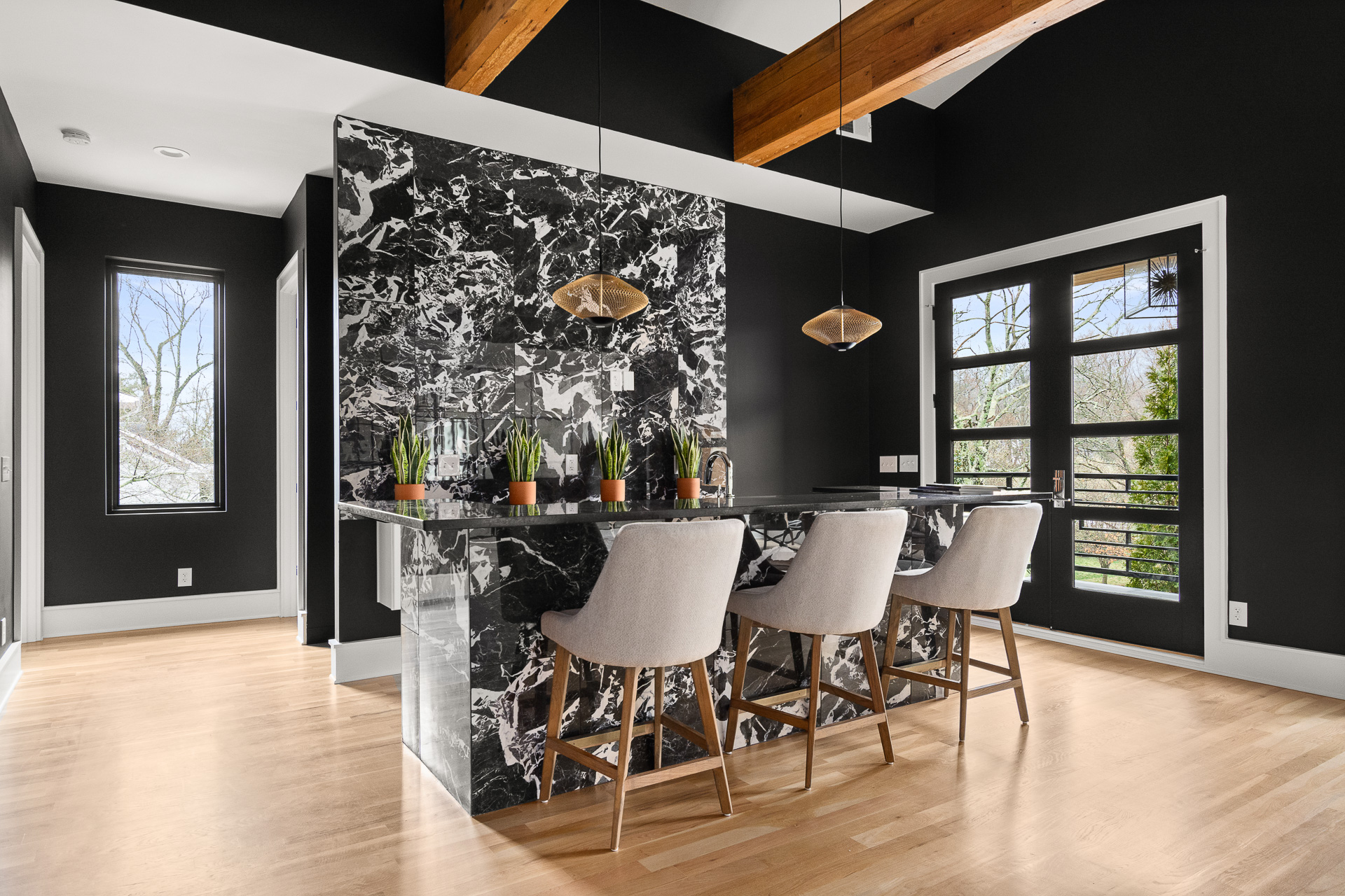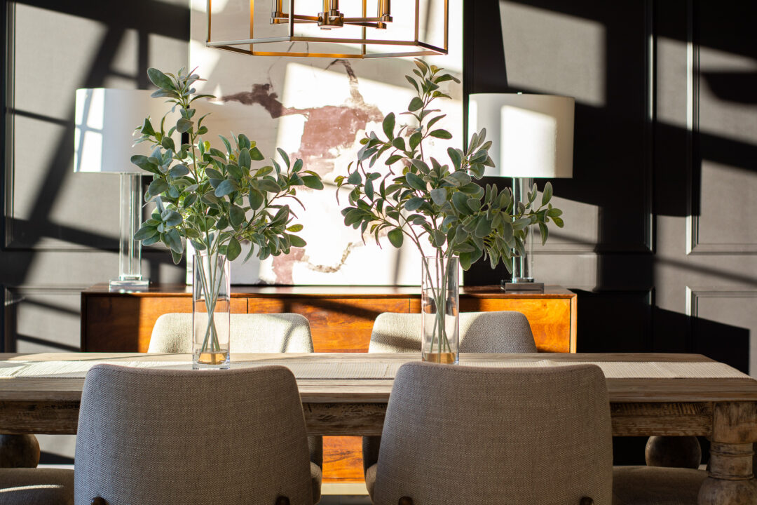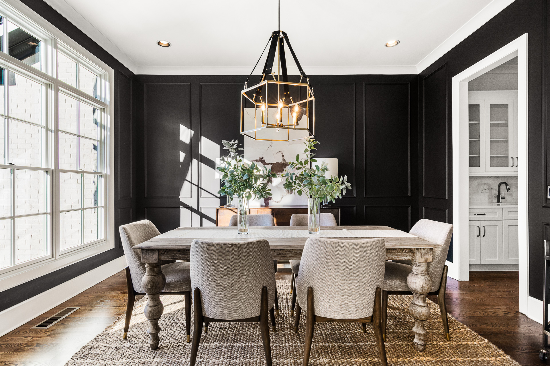 Check out this gorgeous home by Aspen Construction. We fell in love with the black accent walls in the dining room. Upscale living and beautiful designer finishes made this property one of our favorites!