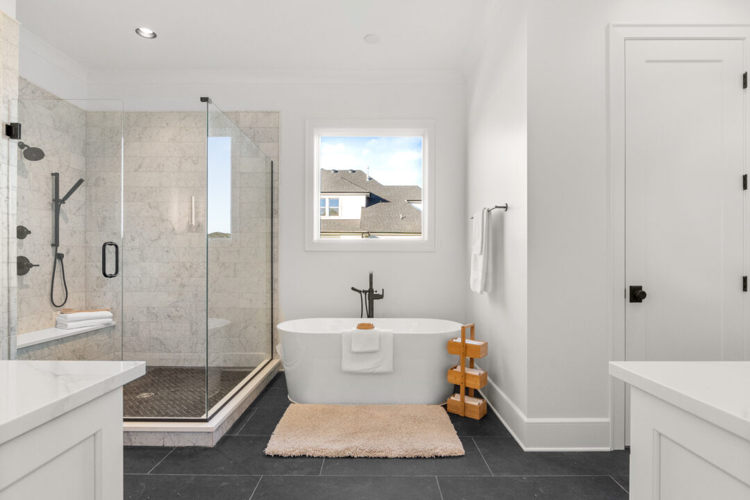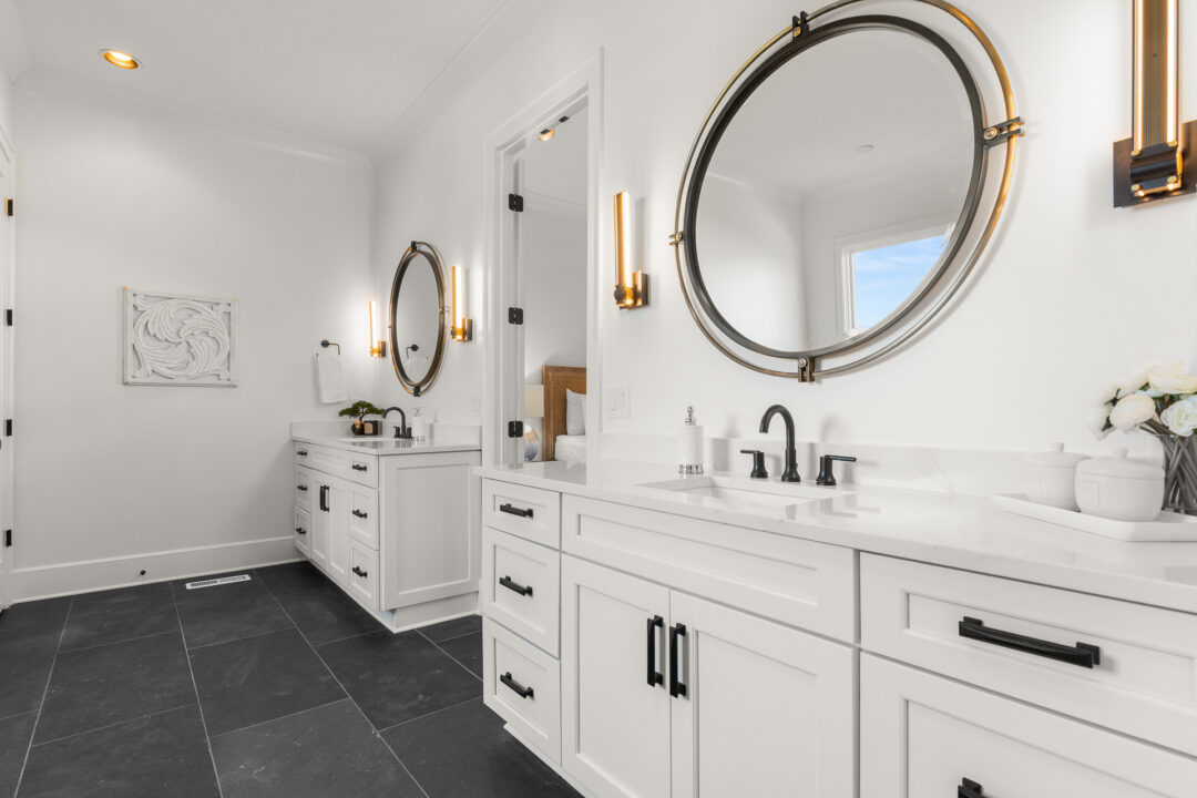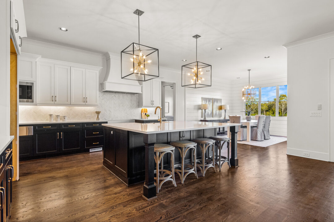 Check out this gorgeous home by Aspen Construction. We fell in love with the black accent walls in the dining room. Upscale living and beautiful designer finishes made this property one of our favorites!